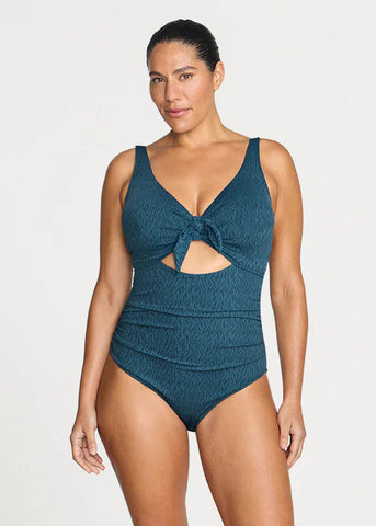 - Mock knot tie with underbust peephole