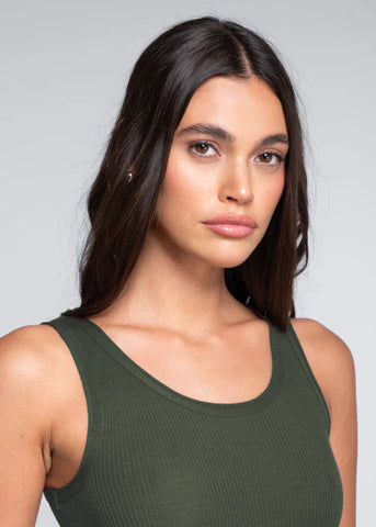 Oscalito Wool Silk Rib Tank Top - Green Wood / XS