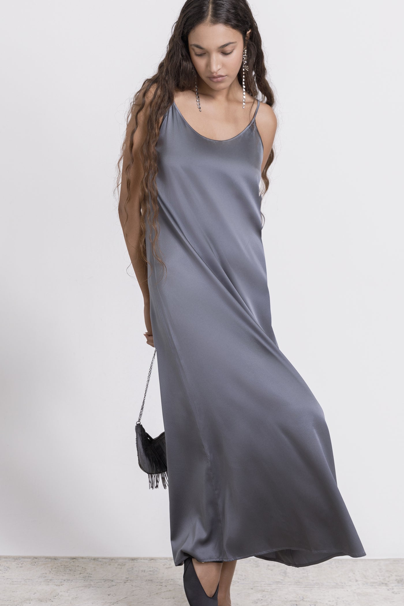Indulge in pure luxury with the Oscalito Long Silk Spaghetti Slip. Made from delicate stretch silk satin, this slip boasts a super-soft touch and adjustable shoulder straps for optimal comfort and elegance. Experience the ultimate in luxury with the softest pure silk against your skin.
