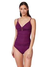 Profile by Gottex Tutti Frutti V-Neck Beaded Tankini Top - Wine / 6